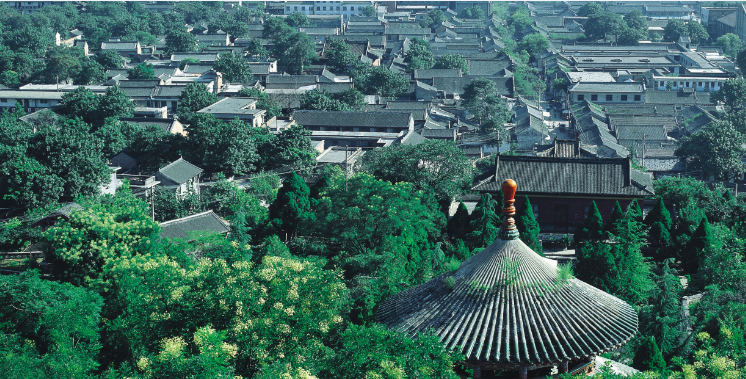 站在碧波荡漾的澽水河畔远眺韩城古城,1500年的古城与古城外的现代化建筑交相辉映。如果乘直升机从空中俯瞰,状若聚宝盆的韩城古城镶嵌在郁郁葱葱的韩原大地上,静谧而古朴。