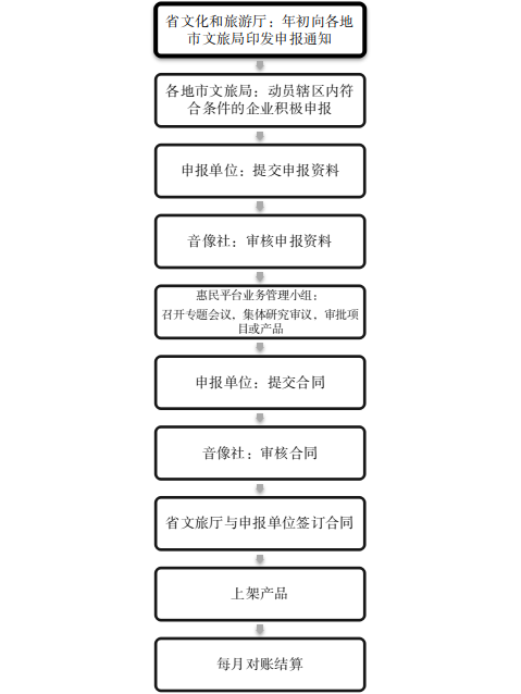 惠民平台项目(或产品)申报单位范围为依法合规设立注册的文化旅游企业,以及从事文化和旅游相关工作的企事业单位及其他机构。申报标准如下: